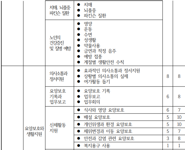 • 실기 시험에서는 "환자 체위 변경", "기저귀 교체" 등 실제 사례 관련 문제에 집중
