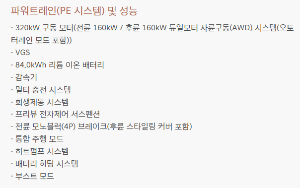 • 배터리: 84.0kWh 용량의 4세대 고전압 배터리