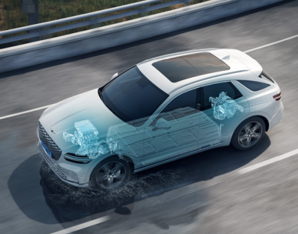 개선된 배터리 덕분에 GV70 전기차의 1회 충전 주행 가능 거리도 크게 향상되었습니다. 19인치 휠 기준으로 복합 주행 시 최대 423km를 주행할 수 있습니다.
