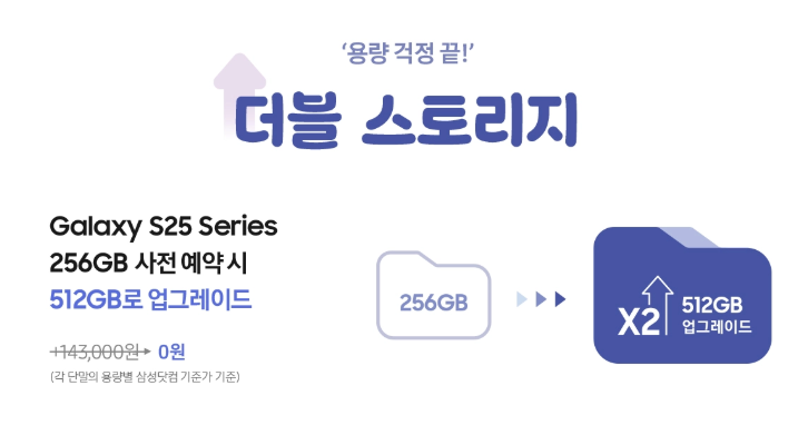 - S25 울트라 512GB 예약 시 1TB로 업그레이드 (143,000원 추가 결제)