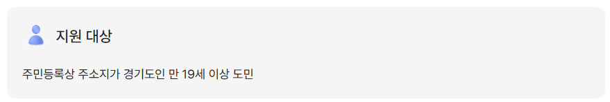 - 신청일 기준 주민등록상 주소지가 경기도인 19세 이상 도민