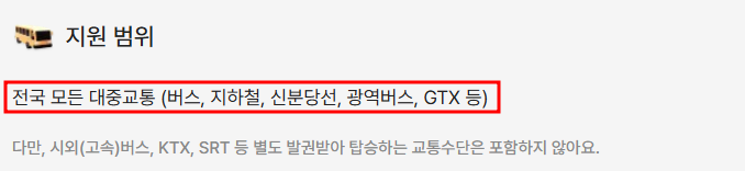 단, KTX, SRT, 항공, 여객선 등 별도로 승차권을 구입해야 하는 교통수단은 제외됩니다.