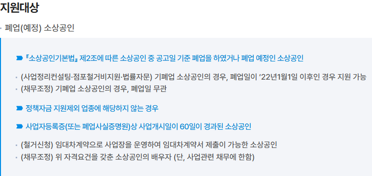 - 사업 운영 기간: 폐업 전 60일 이상 사업을 운영한 소상공인