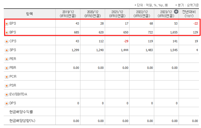 - EPS (주당순이익): 53원 (2023년 기준)